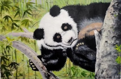 Hand-Painted Panda Oil Painting On Canvas Custom Original Artwork Abstract Wall Decor Animal